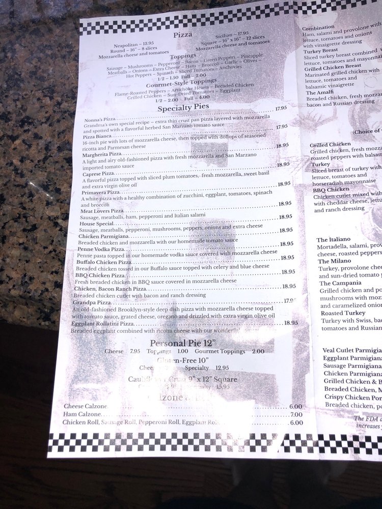 Nonna's Menu